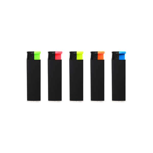 Αναπτήρας Turbo αντιανεμικός της ομάδας PowerFlame Μαύρος Rubber με 5 διαφορετικά χρώματα κλίπ