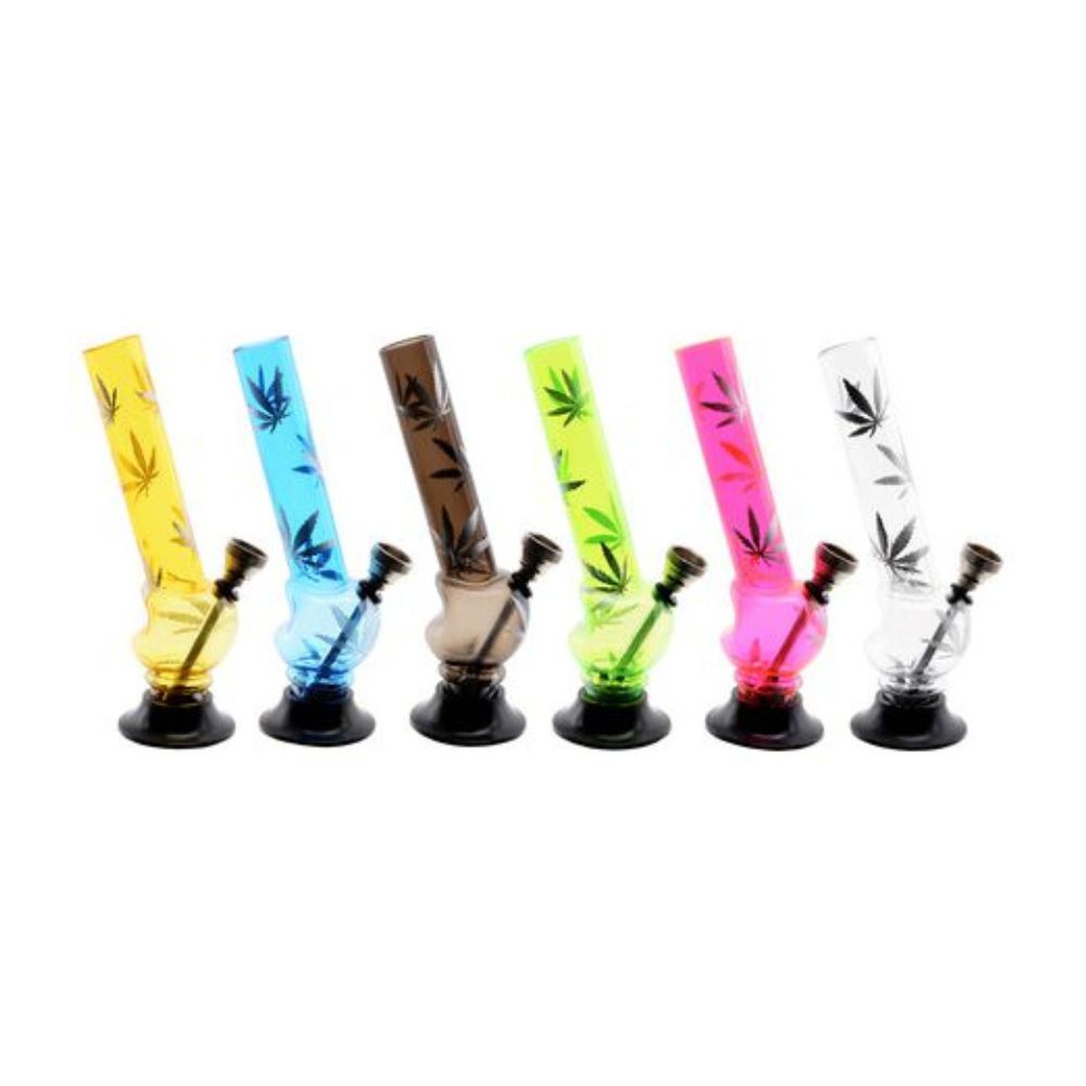 Μινι Ακρυλικό Bong Atomic 15 εκ. σχέδια Cannabis σε 6 χρώματα διάφανα